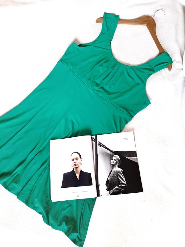 Очень стильное, цвет в жизни, как на фото 1. Внутри трикотажная подкладка, ткань хорошо тянется. Длина 91 см, ширина под грудью 48-55 см. ПОГ 54 см ПОТ 49 см ПОС 55 см
