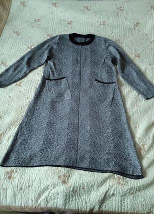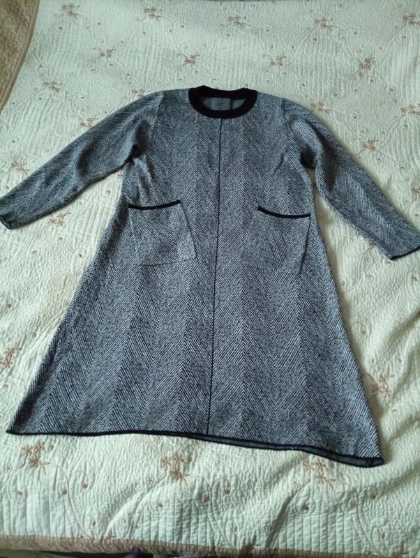 Платье женское. Очень теплое, зимнее. В форме трапеции. Спереди с обеих сторон - по карману. Надела от силы раза 2-3. Принт - ялиночка. Красивая, модняя вещь.