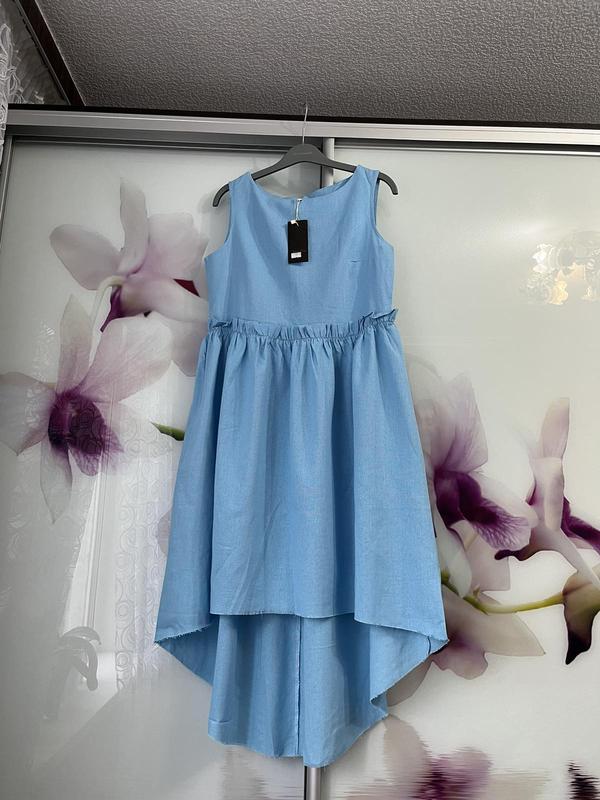 Платье миди. 100% Льон. Голубая. Нова. Размер М. ПОГ 46 см Длина спереди 92 см Длина сзади 120 см