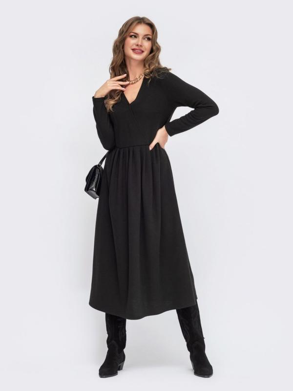 Теплое платье-миди из ангоры с фиксированным запахом. Модель свободного кроя со складками на юбке. 📍Артикул: 42822 👗Размеры: 44, 46, 48, 50, 52 🪡Материал: ангора
