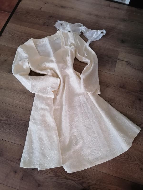 Колір шампань, дуже гарно підкреслює груди, низ розкльошений, можна носити з поясом будь-якого кольору.
