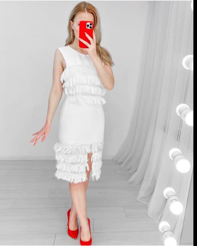 Шикарное белое платье с бахромой🤍 размер L на бирке, но маломерит на S/M полуобхват: грудь-46см (потянется до 48см) талия-38см бедра-48см(максимально потянется к 49см) длина платья-100см
