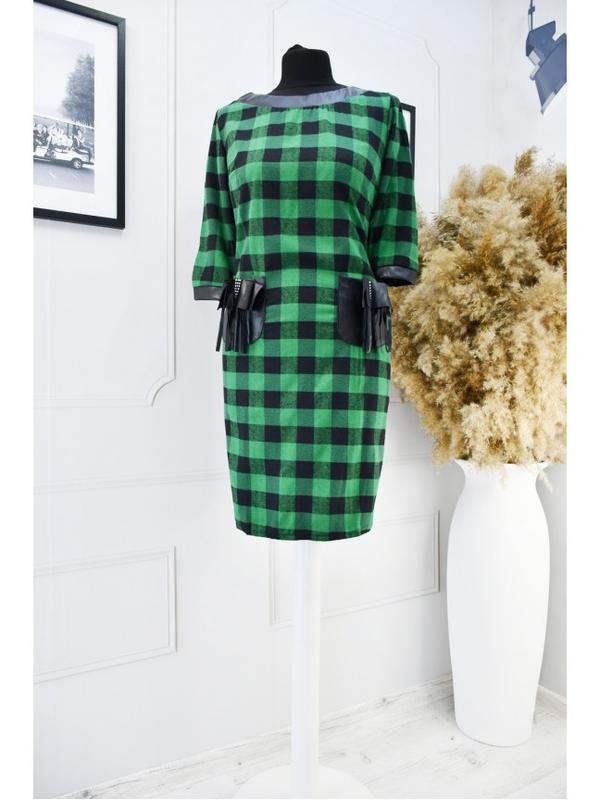 Сукня прямого крою в клітинку з акцентними кишенями Van Gils Vivat Сукня прямого крою у правильній довжині. Такі сукні- універсальні, будь-який стиль взуття, аксесуарів підійдуть і доповнять образ. Сезон весна\осінь, по спинці потаємна блискавка. З боків накладні кишені з еко-шкіри. На комірі така ж вставка. Виробник Туреччина Тканина Котон Еластичність Низька Щільність Середня розмір 46-48 - виміри у лежачому вигляді: плечі – 34 см рукав - 38/25 см ОГ – 86 см ОТ - 86 см ОС - 98 см довжина – 90 см - параметри манекена: ОГ – 80 см ОТ - 60 см ОС - 87 см висота від плеча до п'ят - 143 см