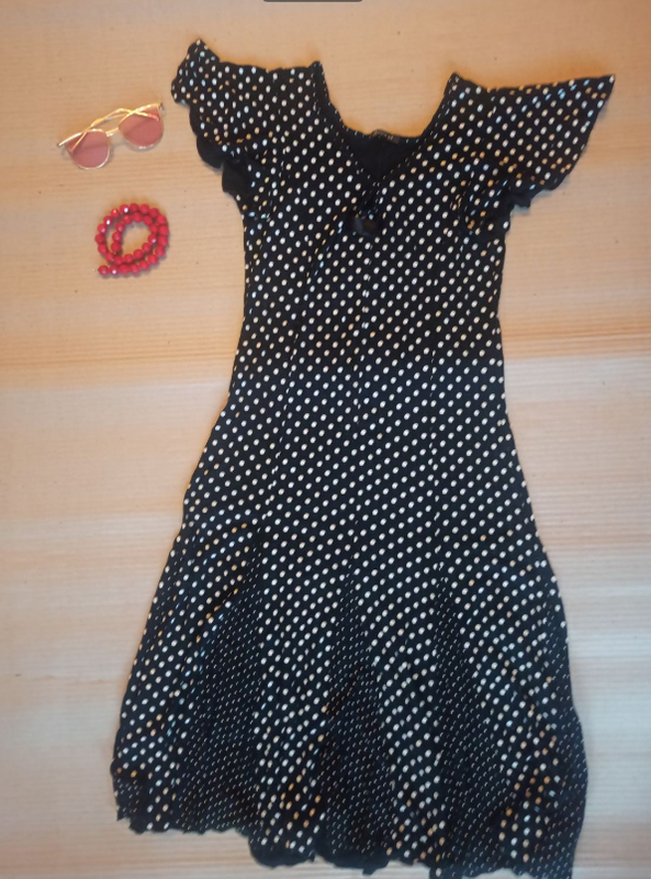 Эффектное платье в горошек!!! Красиво ложиться по фигурке, подчеркивая все плюсы и скрывая минусы)) Указан размер 44 , хорошо тянется. Мерочки : Длина - 1,03 ПОГ - 43+ ПОТ - 39+ ПОБ - 48 + ~ Доставка - Укрпочтой Новой Почтой (оплата услуг транспортной компании при получении)