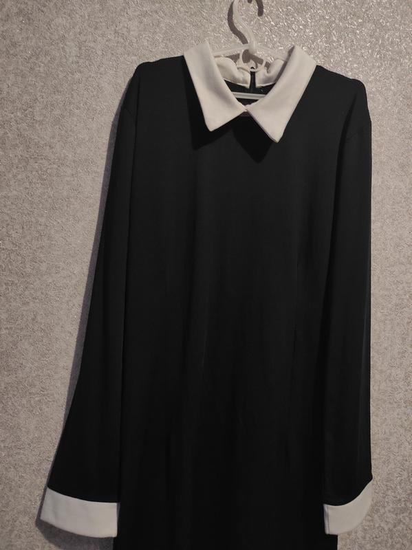 Черное платье с белым воротом и рукавами, ткань хорошо тянется