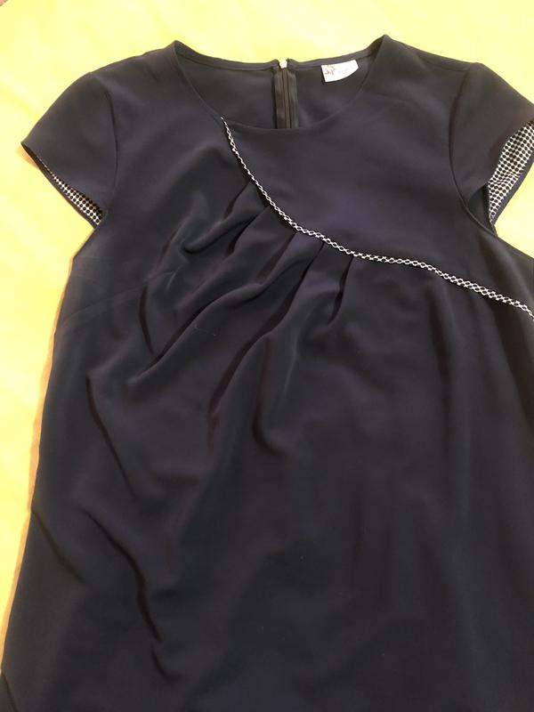 Літнє плаття темно синього кольору ,м’яка тканина , не мнеться , приємна до тіла .Довжина по спинці 91/92 см ,відстань між підмишками 55 см .На спинці застібка - замочок 53 см.