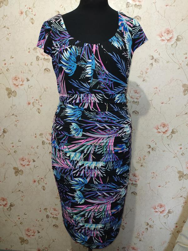 Платье M&Co из эластичной ткани и ярким принтом. UK 14