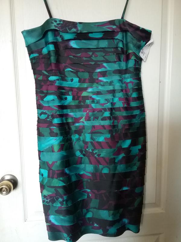 Шикарное яркое и неповторимое платье Connected apparel. Бренд производит вещи "с характором", индивидуальные, стильные и эффектные. Платье пошито полосами, которые крепятся внутри на общей основе. Ткань сказочной расцветки сочетает множество цветов от изумрудного до марсала. В таком платье Вы будете королевой. Отлично подойдет для выпустных, свадеб и других торжественных мероприятий. Размер на бирке 16. Замеры с удовольствием вышлю.