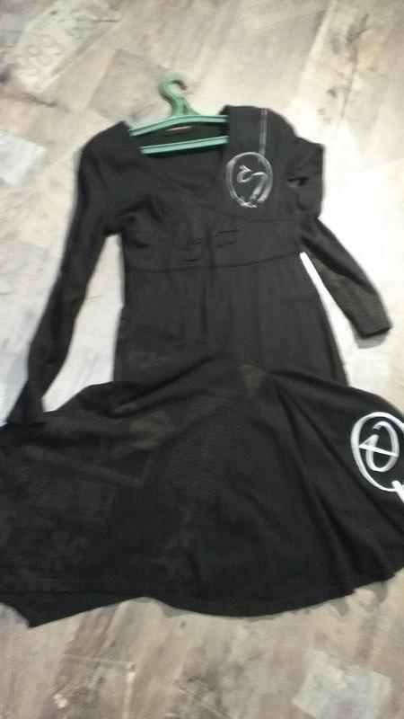 Незвичайне трикотажне плаття, щільний, але не товстий трикотаж, красиво облягає фігуру, асиметричний поділ, різні принти, приталеное, спідниця розкльошена, шалене декольте! На ОГ до 95, ВІД 70-80 см, довжина 90-95 в різних місцях. Надіто 2 рази - стало в грудях тісно! декольте замало )))