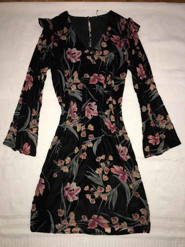 Елегантне розкішне велюрове плаття декороване красивими квітами, марки "Marks&Spencer" collection. Тканина дуже мягенька та легка, в місцях квітів злегка просвічується, має підкладку. Збоку скритий замочок. Плаття прямого крою, має бути вільним. Розмір: англійський 8; європейський 36; український 42 Заміри: Плечі 37 см Довжина рукава 60 см Ширина внизу рукава 20 см Пог 43 см Пот 42 см Поб 46 см Ширина по низу 49 см Загальна довжина 98 см