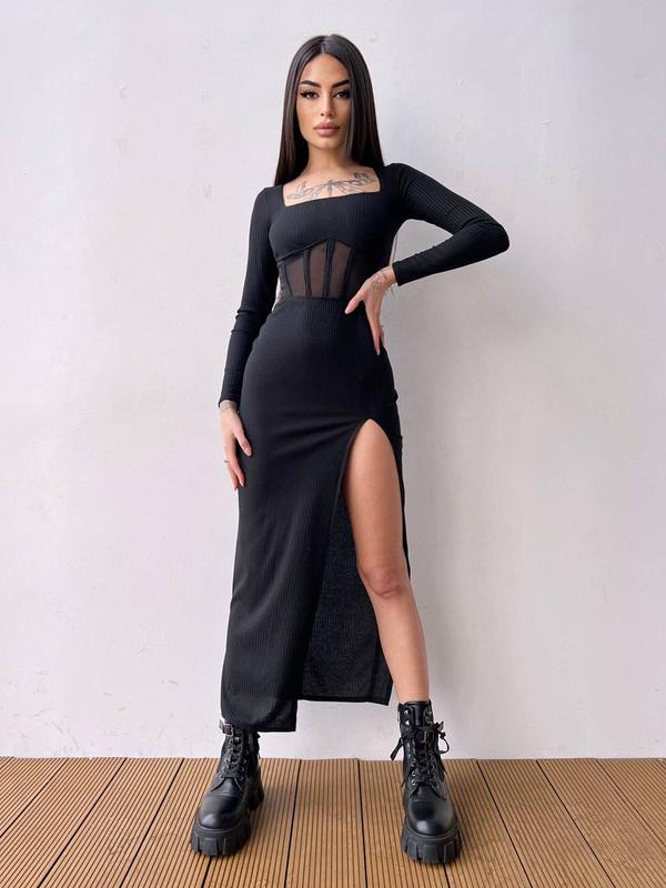 Сукня-міді з елементами корсету ▫️тканина: трикотаж рубчик ▫️розмір: Розмір S та М