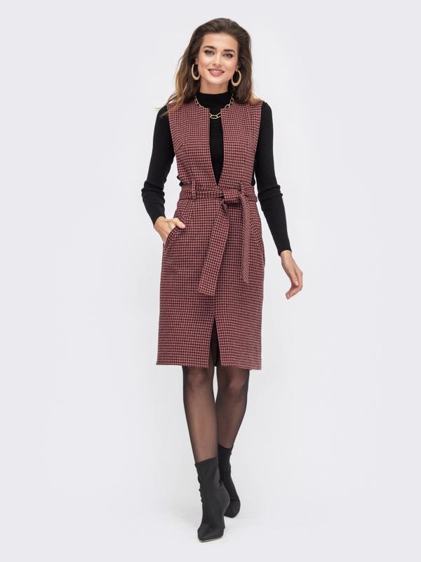 🔥Базовий сарафан із жаккарда в клітину з глибокою проймою. На спідниці розріз спереду та кишені з боків. Застібається на блискавку збоку. Тканинний пояс у комплекті. ✔довжина виробу – 102 см. 🧶Склад: 80% бавовна, 20% поліестер 🧶Матеріал: Жаккард 🎨Колір: теракотовий ✔Розмір :46,48,50,52 💳Ціна 1450грн Арт 44009 ❗❗Для замовлення та детальної інформації пишемо у дірект💌, або коментарі ⤵️