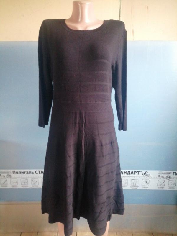 Симпатичное черное платье. Рукав 3/4. Слегка розклешенное. Полосочки похожи на "растянутую резинку". Почти новое, состояние идеал. Замеры :длина изделия по спинке 99.5 см, плечи 40 см, полуобхват груди 46.5 см, низ 78 см, длина рукава 45.5 см, внутренний шов 32 см.
