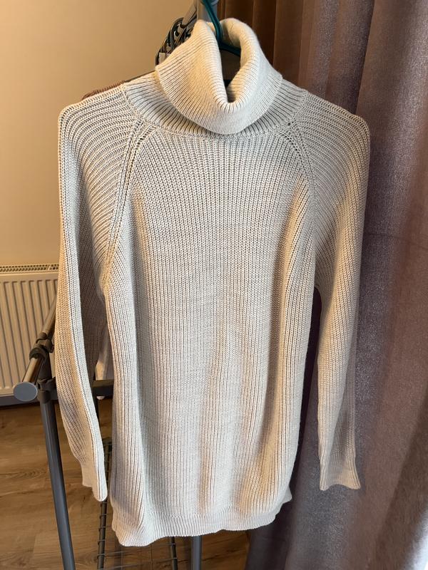 Подовжена в'язана кофта/плаття світло бежевого кольору 100% акрил
