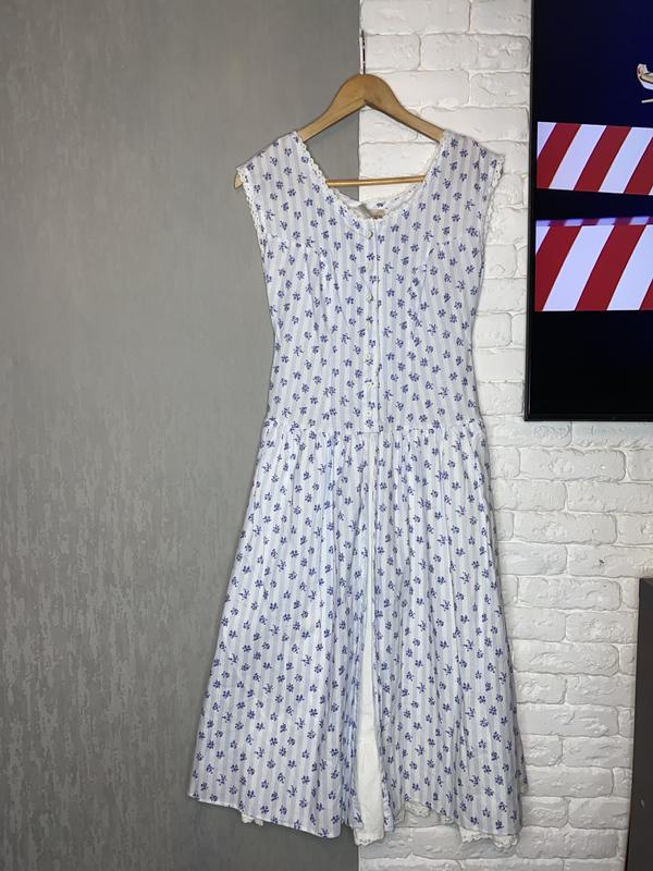 Винтажное платье миди платье в цветочный принт и полоска Richards, M. Длина 111см, ПОГ 45-46см, ПОТ 35см, ПОБ 68см