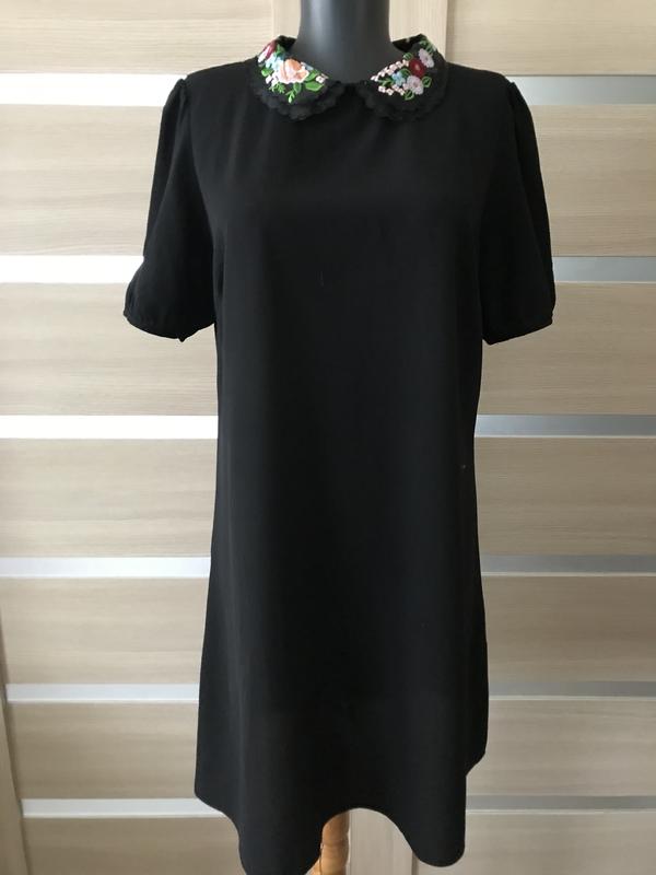 Красивое платье, вышивка на воротничке, длина 86 см, ПОГ 48 см, ПОБ 52 см, ширина плеча 38 см, рукав 22 см. Полиэстер.