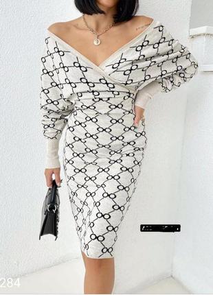 Облегающее светлое платье по силуэту в модный принт. Можно носить с открытыми плечиками. Очень женственное и красивое. Длина 104 см, рукав 72 см. ОТ 62-78 см, ОГ - свободно, ОБ - 80-96 см. Состав: вязка акрил/полиамид Размер: 44-48 Производство: Турция