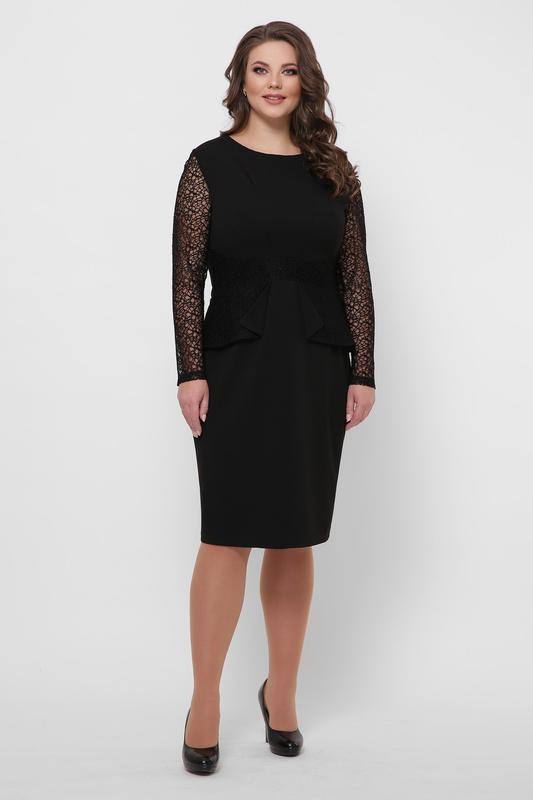 52 размер: подойдет на параметры: ОГ 103-105 см, ОТ 86-90 см, ОБ 109-112 см 54 размер: подойдет на параметры: ОГ 107-110 см, ОТ 91-95 см, ОБ 113-116 см 56 размер: подойдет на параметры: ОГ 111-113 см, ОТ 96-98 см, ОБ 116-120 см 58 размер: подойдет на параметры: ОГ 115-117 см, ОТ 99-102 см, ОБ 121-124 см Ткань ― креп-дайвинг (полиэстер-90 % лайкра-5% вискоза-5%) + сетка (100% полиэстер). Рост модели 174 см, размер 52. Нарядное платье полуприталенного силуэта. С длинным ажурным рукавом. Горловина круглая. Модель отрезная по талии с декоративным фигурным поясом. Лиф платья со сложным конструктивным решением - симметричные защипы и двойные нагрудные выточки. По спинке центральный шов с застежкой "молния" и рельефами. Модель с баской от полочки до рельефа спинки. По полочке баска не союзна, с отворотами. Рукав, пояс, баска из отделочной ткани - ажурной сетки в тон. Длина платья "за колено". Модель нарядная, монохромная, визуально делающая фигуру.