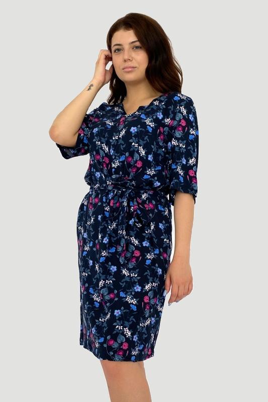 Летнее платье миди из 100% вискозы, постепенно приобретающая дополнительный объем к низу благодаря отрезной талии поясом и трапециевидным кроем. Отрезное по линии талии с тканевым ремнем в цвет платья, создает легкий объем лифа, V-образный воротник. Ткань с цветочным принтом, который вот уже на протяжении нескольких сезонов украшает мировые подиумы. ХАРАКТЕРИСТИКИ: Основной материал: 100% вискоза Длина юбки: миди Модель юбки: трапециевидная Покрой: А-силует Тип карманов: прорезные ПАРАМЕТРЫ ПЛАТЬЯ Размер одежды Международный размер Полуобхват груди, см Полуобхват талии, см Полуобхват бедер, см 42 XS - - - 44 S 48 51 53 46 M 51 52 56 48 L - - - 50 XL - - - 52 2XL - - - 54\56 3XL - - - 58 4XL - - - 60\62 5XL - - - Длина изделия по спинке: S - 94 см, M - 99 см Ширина плеч: S - 42 см, M - 43 см МАТЕРИАЛ: Razzy Print (100% вискоза) - ткань с принтованным рисунком, основными достоинствами которой являются гигиеничность и воздухопроницаемость. Еще один плюс в том, что вискоза не накапливает статического электричества, а значит, не возникнет неприятного треска и покалывающего воздействия на кожу. УХОД: Перед стиркой застегнуть на все молнии, кнопки и пуговицы, не замачивать, не отбеливать, стирать в деликатном режиме при максимальной температуре 30°C. Рекомендован слабый отжим. Не рекомендуется сушить в стиральной машине. Гладить при максимальной температуре 110°C. Усадка изделия по длине после первой стирки 3-5%. Прекрасное качество изделия и фурнитуры гарантировано финским брендом одежды Finn Flare (Фин Флаер).