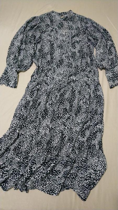 Шикарное платье миди натуральное великолепного качества длинный рукав на широком манжете черно-белый принт ткань очень приятна к телу удобно в носке ПОГ 45 ПЛЕЧИ 38,5 РУК 57 БЕДРА 60 ДЛИНА 126