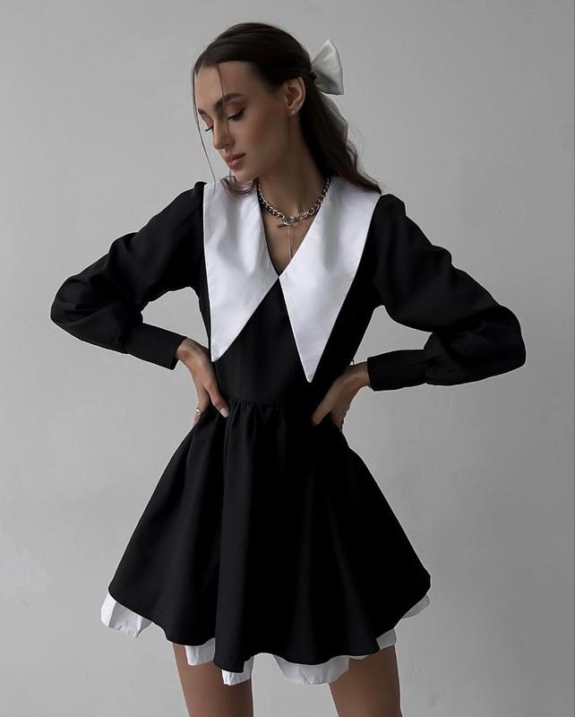Ми знайшли ту саму сукню "Уенсдей" і це кохання з першого погляду ❤ Класична сукня, яку можна застосувати до будь-якого заходу 🕷 Спідниця подвійна як на фото ▪️Модель 463/73 ▪Розмір: 42-44; 46-48 ▪️Колір: чорний 🖤 ▪️Тканина: коттон