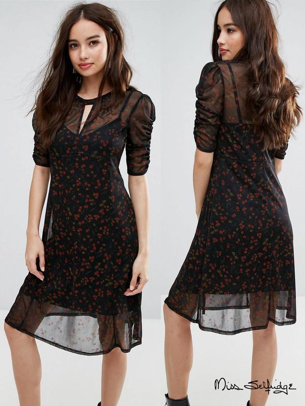 Двойное платье-сетка сетчатое платье с драпировкой в цветочный принт miss selfridge