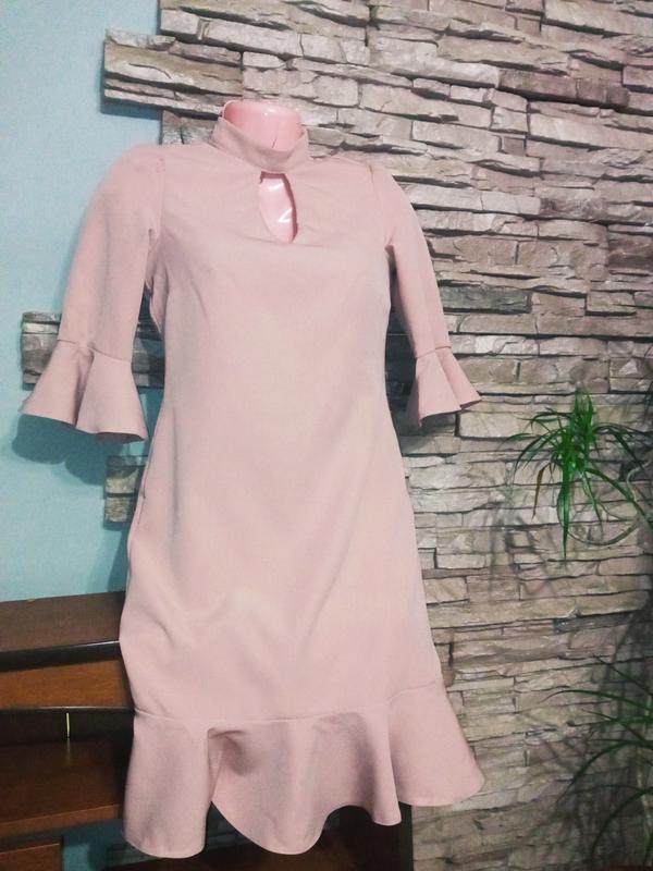Стильна сукня, підійде для урочистих подій, а також на повсякденне життя Відмінна якість В ідеальному стані Ніжного пастельного пудрового кольору Цупка дорога тканина з еластаном, трохи тягнеться Має підкладку, ззаду застібається на потайний замочок Довжина - 91 см ПОГ- 40см ПОТ - 35см ПОБ - 42 см