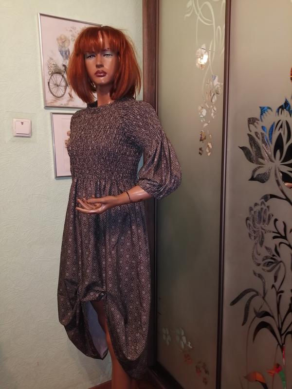 На модели платья такого фасона, показала для надзора, в продаже, как на манекене! Бирок никаких нет, на модели платья подобное, показала для надзорности.Низ подшит и закреплен лентой, ее можно отпороть, будет платье с ровным подолом.Пог 42-52,резинки,пот 36-46,поб 76, длин рук от горловины 54,длинтв по спинке 125,спереда 82.