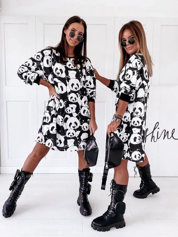 Сукня Модель 717VL Размеры- 42-44,46-48,50-52 Ткань- итальянский трикотаж, турецкая меловая. Принт- оригинальной дизайнерской рисунок, как на фото на 100%. Свободное платье с оригинальным дизайном, длинный рукав реглан, горловина и манжеты выполнены из рибаны; качественный дизайнерский рисунок, фото в живую. Параметры ВЫРОБА по внешнему шву: 42-44: ОГ104, ОТ100, ОБ108, рукав от шва 50см, бицепс 39см, длина изделия по спинке от плечевого шва 85см; 46-48: ОГ116, ОТ110, ОБ116, рукав от шва 50см, бицепс 40см, длина изделия по спинке от плечевого шва 88см; 50-52: ОГ124, ОТ116, ОБ122, рукав от шва 51, бицепс 44, длина изделия по спинке от плечевого шва 89см.