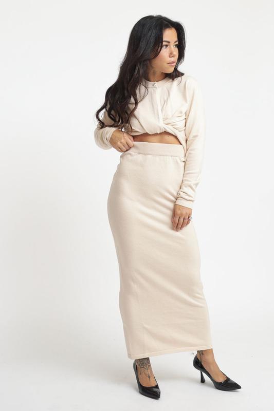 Трикотажна сукня міді NA-KD Тепла трикотажна сукня має відкритий животик та перлинку на круглому вирізі шиї. Колір: бежевий, чорний Склад 77% поліестер та 23% віскоза Розмір S/M Ціна 990 грн За запитом реальні фото та заміри