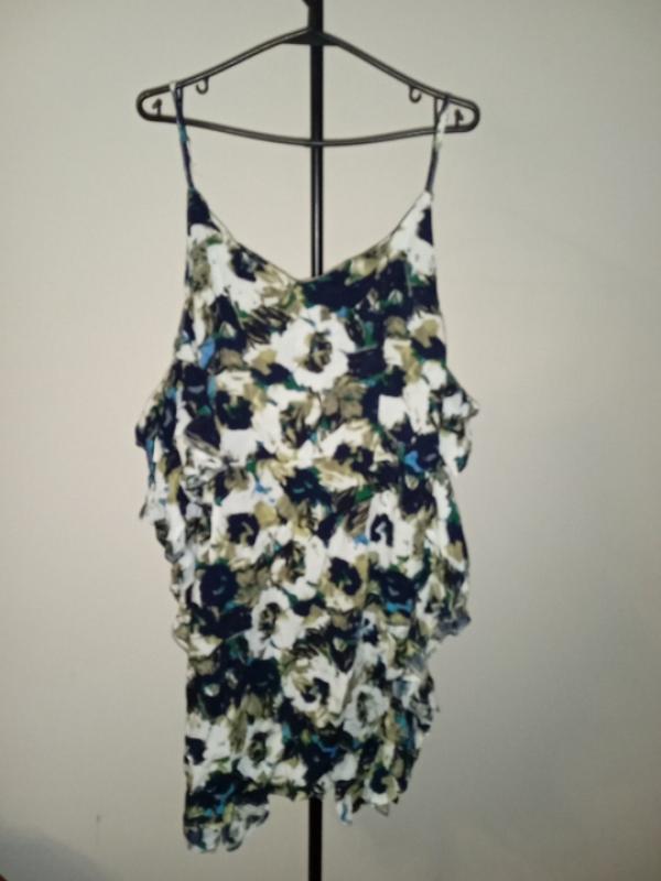 платье красивой расцветки по бокам воланы в длину шва,можно одевать на бретельках можно добавить валаны,длина 99см,ПОГ 52см,ПОТалии 42см