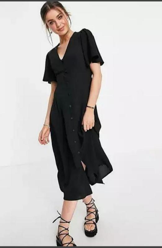 Плаття ,на гудзиках спереді ,чорного кольору від ASOS.Виконано із-97% -полієстер і 3%-еластану.Вказаний роозмір -16 (маломіре),але оріентуйтесь по замірам..Напівобхват грудей-51. Напівобхват талії-48(можна менше за рахунок поясу).Напівобхват стеген-62.Плечі-40. Довжина-120.Стан нової речі.Сток.Всі замовлення через Шафу оформляються після 100 % передоплати на картку приват банку.Всі запитання задавайте відразу повернення не має..