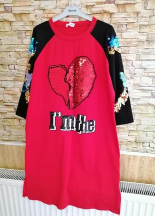 трикотажное платье туника с вышивкой украшена пайетками надписями с разрезами по бокам рукав укороченный . замеры ::: грудь 106 см тянется на 140 см , бёдра 108 см тянется на 148 см , длина платья 100 см , высота разреза от низа 14 см , длина рукава от горловины 55 см , плечевого шва нет плечи реглан Дапускаю погрешность замерах плюс-минус 1 см отправляю безопасной оплатой с возможностью осмотра примерки на почтовом отделении Без риска для покупателя трикотажне плаття туніка з вишивкою прикрашена паєтками написами з розрізами з боків укорочений рукав . виміри ::: груди 106 см тягнеться на 140 см, стегна 108 см тягнеться на 148 см, довжина сукні 100 см, висота розрізу від низу 14 см, довжина рукава від горловини 55 см, плечового шва немає плечі реглан Допускаю погрішність 1 см надсилаю безпечною оплатою з можливістю огляду примірки на поштовому відділенні Без ризику для покупця