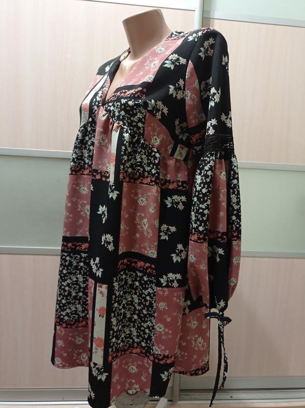 Платье в стиле печворк, свободного кроя,красовые рукава с кружевной вставкой В идеальном состоянии Размер указанный 12 Замеры на фото