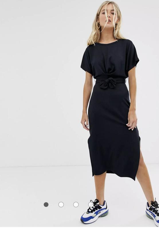Очень красивое и стильное платье миди Bershka с завязками черная, в идеальном состоянии! Красивая и женственная! Качество шикарное (см.последнее фото) поднимется на размер S-M Длина 117, ПОГ 53 см, ПОТ 41, ПОБ 48-49 см