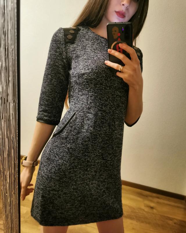 Тепла синя сукня зі шкіряними вставками