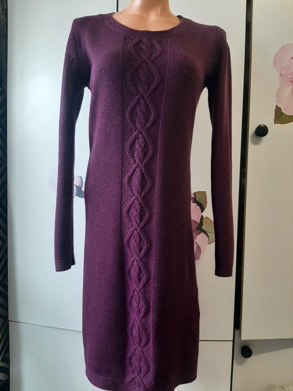 Платье красивого цвета с центральным узором из косы. Длина 95см, по 43-39-43см. Хорошее состояние.