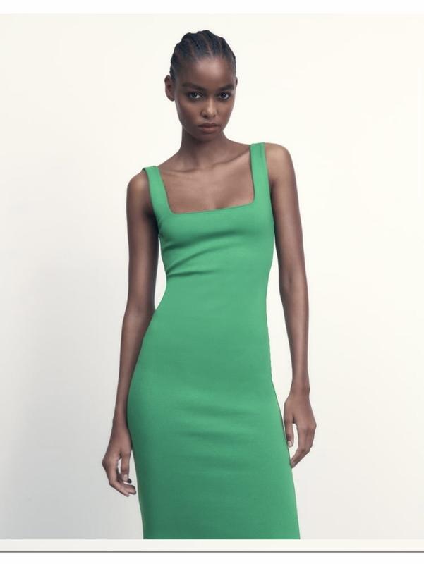 Стильное платье от Zara Размер S Красиво подчеркивает зону декольте и фигуру!! Тканина 95% котон 5%еластан ПО груди 31см По бедра 34см Длина 107см Ткань очень хорошо тянется ( почти в два раза)