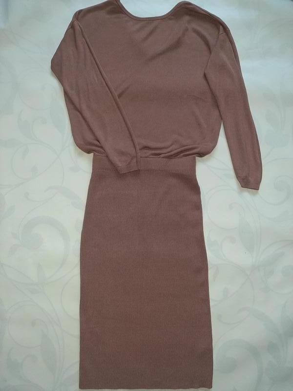 Красивое платье известного бренда. Юбка вязкая плотный рубчик, верх более тонкий, чуть с напуском. Длина 108см, пог 48, пот 30, поб 36см. Тянется.