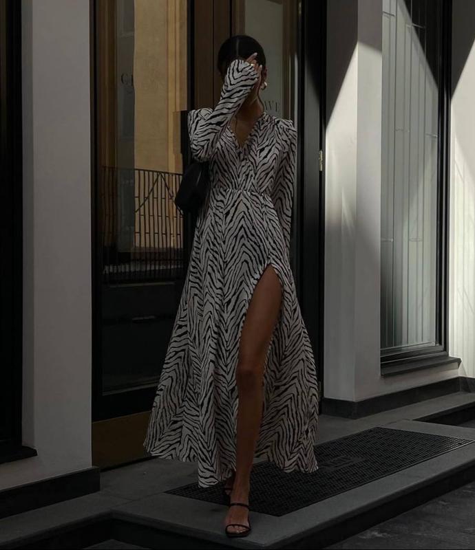 Платье миди с разрезом в принте зебра🔥🦓