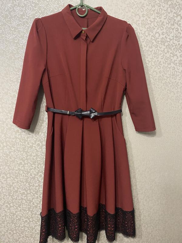 Платье в идеальном состоянии. На мой рост (167) длина чуть ниже колена. Есть поясок.Спереди пуговицы и дополнительно с левой стороны молния.