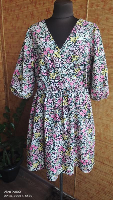Очень красивое яркое платье с пышными рукавами. Пояс на резинке.Рукав 3/4 Есть размеры 14, 16. Плечи-38см ПОГ-57СМ ПОТ-44см в нерастянутом состоянии. Длина рукава -45см Длина платья -96см
