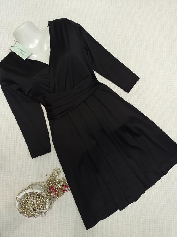 Платье трикотажное,верх на запах, на талии драпировка, ткань трикотажная, тонкая, ниспадающая, тянется, рукава 3/4 Новое с биркой, безансов Размер указанный XL Замеры на фото, тянется