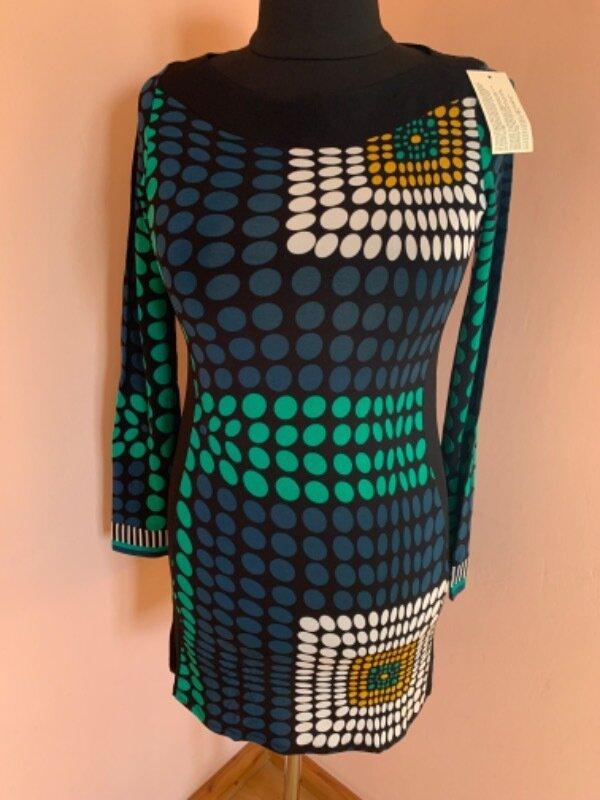Класне плаття з віскози- модалу в розмірі 38 прислано з Європи. Довжина- 82см, плечі-39см, рукав від плеча- 65см, пог- 45см, пот-40см, поб-48см.