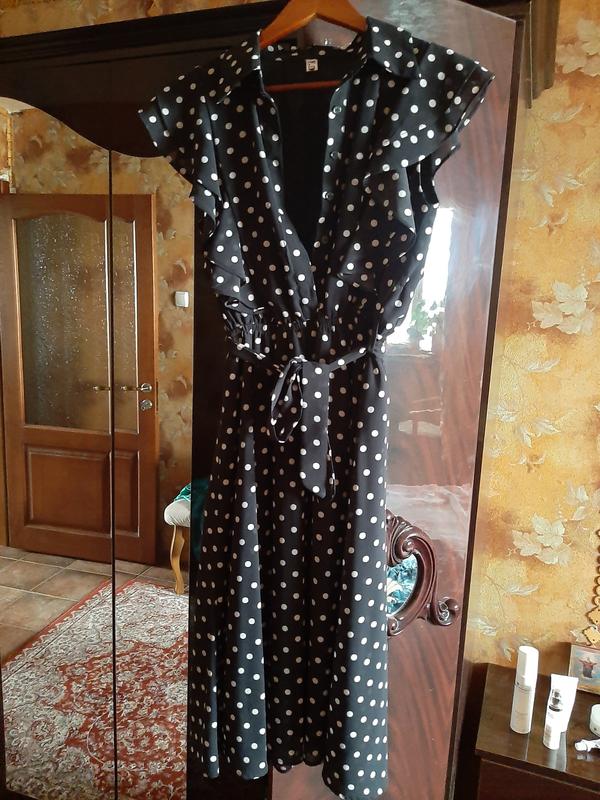 Размер L (INT), 46 (UKR) Цвет черный, в белый горох. Состав полиэстер, на подкладке Длина 110 см