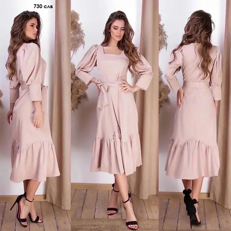 Платье женское норма и батал Цвет-Бежевый Размеры: 48;50;52;54 Цвет- розовый Размеры : 42;44;46;48;50;52;54 Цвет-фисташка размеры: 42;44;46;50;52;54 Дополнительные характеристики Длина, см: 112 длина рукава, см: 48 ткань: костюмка, поясок в комплекте, вдоль спинки потайная молния