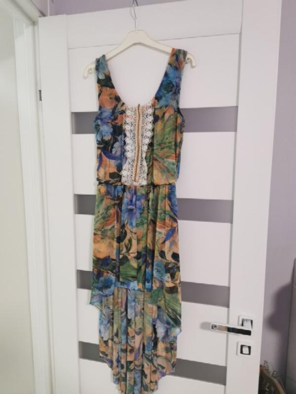 Красивый принт в цветы и кружево. Спереду коротеньке.