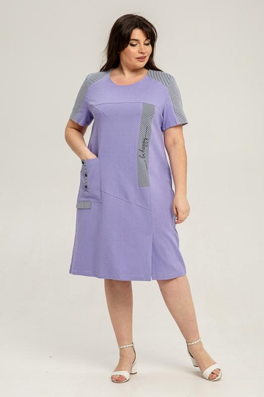 Лляне плаття напівприталеного силуету. Розтяжність тканини низька. Спинка статична, вгорі розташована кокетка. Рукав короткий, одношовний, ушивний. З правого боку полиці розташована кишеня з настроченим патом. Внизу, з лівого боку полиці виготовлений шліц. Пати та кокетка спинки з контрастної тканини. Сукня декорована ґудзиками. Орієнтовні виміри за готовим виробом: р.52: ОГ — 106 см, ОТ — 110 см, ОС — 114 см; ширина рукава — 36 см; ширина плечей — 42 см; довжина рукава — 24 см; р.54: ОГ — 110 см, ОТ — 114 см, ОС — 118 см; ширина рукава — 42 см; ширина плечей — 43 см; довжина рукава — 25 см; р.56: ОГ — 114 см, ОТ — 118 см, ОС — 124 см; ширина рукава — 46 см; ширина плечей — 43 см; довжина рукава — 25 см; р.58: ОГ — 120 см, ОТ — 124 см, ОС — 130 см; ширина рукава — 48 см; ширина плечей — 44 см; довжина рукава — 25 см; р.60: ОГ — 126 см, ОТ — 132 см, ОС — 140 см; ширина рукава — 48 см; ширина плечей — 46 см; довжина рукава — 25 см; р.62: ОГ — 132 см, ОТ — 136 см, ОС — 144 см; ширина рукава — 50 см; ширина плечей — 47 см; довжина рукава — 25 см; Довжина виробу: р.52 - 106см; р.54,56 - 110см; р.58,60,62 - 112см. * Заміри можуть відрізнятися від зазначених на +-2 см залежно від особливостей тканини, технічних особливостей пошиття, ступеня зсідання тканини. Рост модели 168 см Довжина рукава р. 52- 24 см; р.54,56,58,60,62 - 25 см. Тип тканини льон Склад тканини льон 60%, поліестер 40% Довжина виробу по спинці р.52 - 106см; р.54,56 - 110см; р.58,60,62 - 112 см. Колір сирень Плаття Мілена Артикул 101426