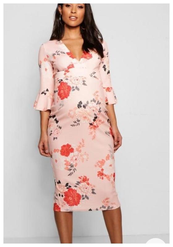 Платье миди в цветы для беременных с завышенной талией Boohoo р. 16 (р. XL) средней плотности ткань, хорошо тянется. Рукав с воланом три четверти, шлица. Замеры: ПОГ 50 см (тянется до 54 см) длина от плеча 114 см ПОТ 45 см (тянется до 50 см) ПОБ 53 см (тянется до 58 см) рукав 41 см плечи 40 см (тянется до 43 см)