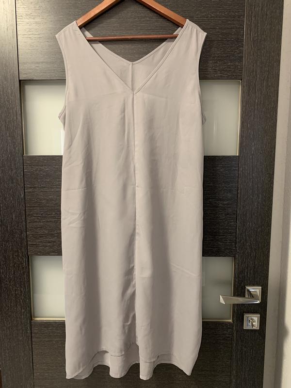 Легкое платье в размере L. Состояние очень хорошее. Длина по спине 109см, спереди 105 см. ПО груди 57 см Талия 65 см Стегна 74 см